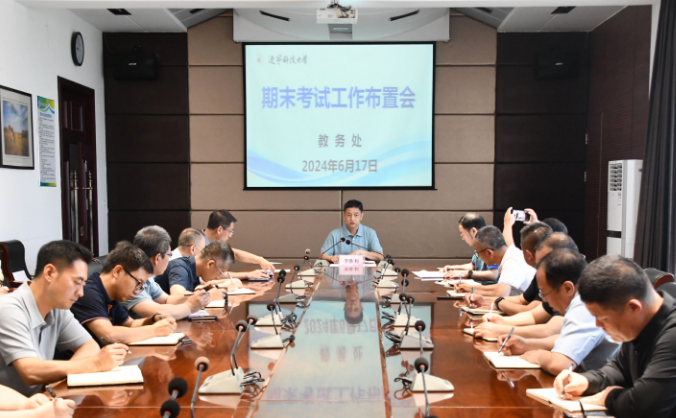 6月17日,乐动在线-乐动(中国)召开期末考试工作布置会,会议在校部421会议室举行。校党委常委、副校长李胜利主持会议并讲话。教务处、教学质量监控与评估中心以及各教学单位教学工作负责人参加会议。