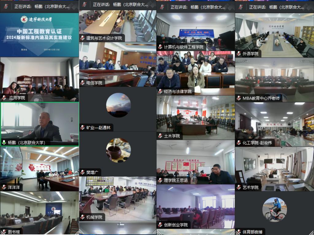12月12日,辽科大邀请北京联合大学杨鹏教授做工程教育专业认证培训,主题为“中国工程教育认证2024版新标准内涵及其实施建议”,全校各学院院长、教学院长、专业负责人及相关教师参会。