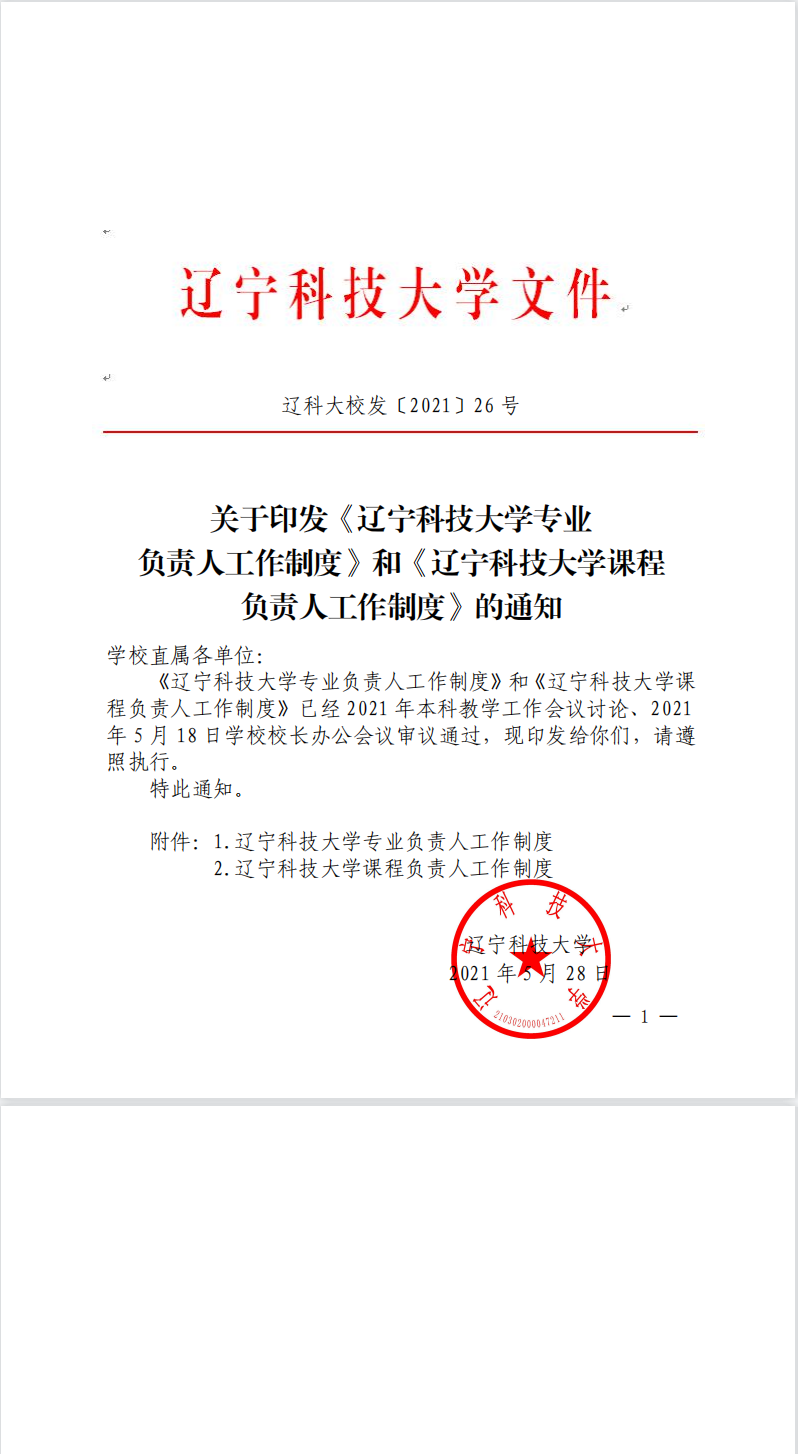 辽科大校发〔2021〕26号:关于印发《乐动在线-乐动(中国)专业负责人工作制度》和《乐动在线-乐动(中国)课程负责人工作制度》的通知