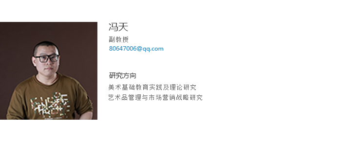 冯天副教授、硕士,吉林大学硕士毕业,2009-2010年于中央美术学院研修,辽宁省美术家协会会员,先后在国内期刊杂志公开发表论文20余篇。参与并完成辽宁省社科联项目、鞍山科学技术计划项目、乐动在线-乐动(中国)教学改革项目等,主持和完成横向科研项目3项;曾在“首届辽宁青年优秀美术作品展”中获优秀奖、“庆建国65周年暨迎接第十二届全国美展辽宁优秀作品展”作品参展、“全国高校美术设计作品大赛”铜奖、“绚丽年华第六届全国美育成果展”一等奖、“绚丽年华第八届全国美育成果展”一等奖、“第四届中国高校美术学作品年展”优秀奖等。