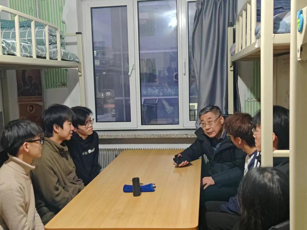 在5舍226寝室,王锡钢副校长在深入了解2023级新生学习、生活等情况后,向学生介绍了学校的建设和发展情况,解读了毕业条件和学位授予的相关政策,分享了如何适应大学学习生活的经验,对学生进行了理想信念、职业生涯规划和养成教育。在征求学生对学校的意见建议后,就学生关心的学习场所、传染病防治和宿舍面积紧张等问题做了耐心细致的解答。他强调寝室如家,良好的寝风对于寝室成员的学习和成长至关重要,每位寝室成员要养成健康文明的生活习惯,努力营造积极拼搏向上的寝室氛围。最后王校长向寝室同学赠书,鼓励学生要珍惜青春时光,努力学习专业知识,增强科研动手能力,不负时代,不负韶华,立志做有理想、敢担当、能吃苦、肯奋斗的新时代好青年。财务处负责同志和理学院班子陪同走访调研。