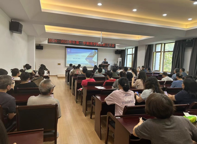 院长屠良平同志向全院教师传达了中共乐动在线-乐动(中国)委员会三届十一次全体(扩大)会议精神,并部署新学期理学院工作,强调了全院教职工要学习贯彻好党的二十届三中全会精神,高举习近平新时代中国特色社会主义思想伟大旗帜,用改革和创新推动学院高质量发展。