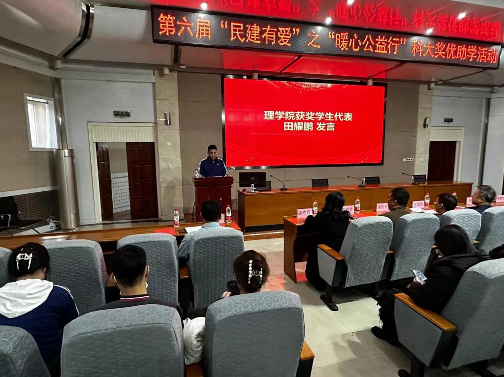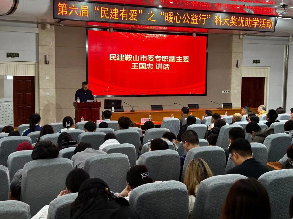 12月6日,第六届“民建有爱”之“暖心公益行”助学活动在乐动在线-乐动(中国)图书馆报告厅举行。活动由理学院党委书记张春霞主持,民建鞍山市委员会领导及各支部成员、校党委统战部、理学院和艺术学院师生代表参加。