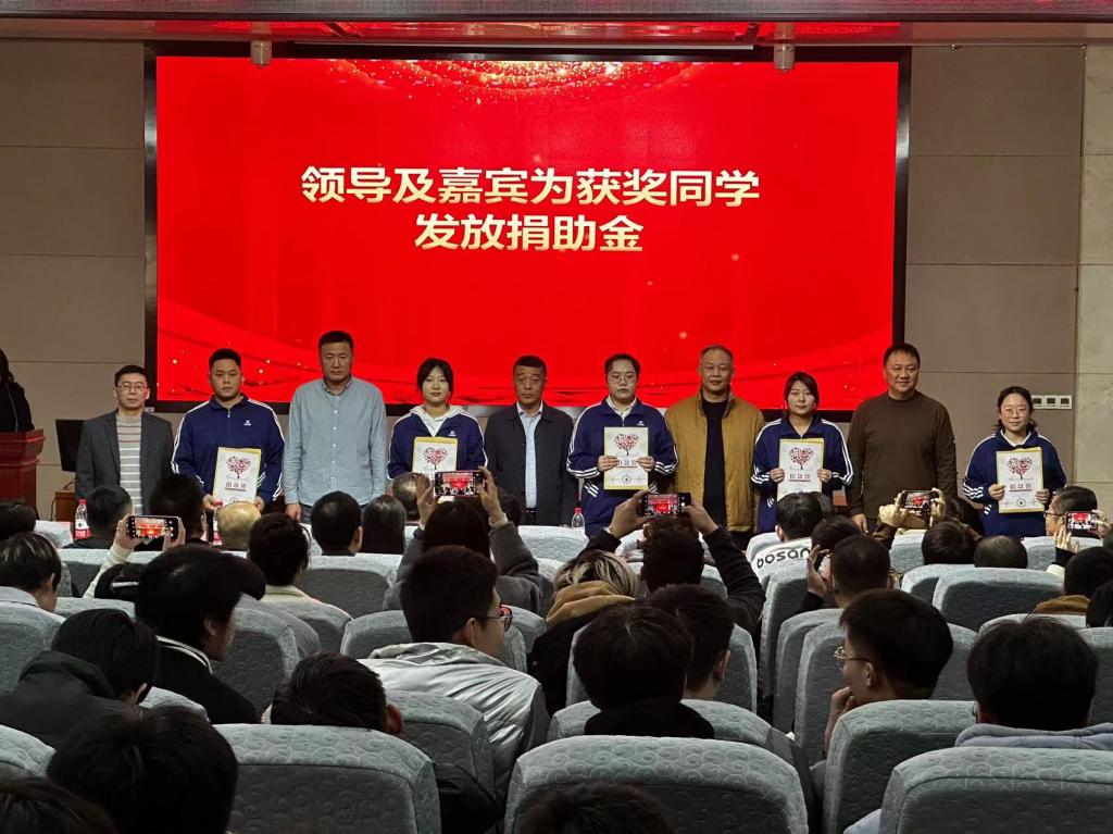 校党委常委、统战部部长金宪志在讲话中首先感谢民建鞍山市委员会给予乐动在线-乐动(中国)的大力支持和对贫寒学子的大力帮扶。他希望受资助学生常怀感恩之心,奉献之情,把梦想牢牢掌握在自己手中,刻苦学习,拼搏向上,用辛勤的劳动创造美好生活,以实际行动回报社会爱心人士的帮助,为祖国建设贡献智慧力量。