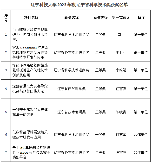 辽科大7项成果荣获2023年度辽宁省科学技术奖励