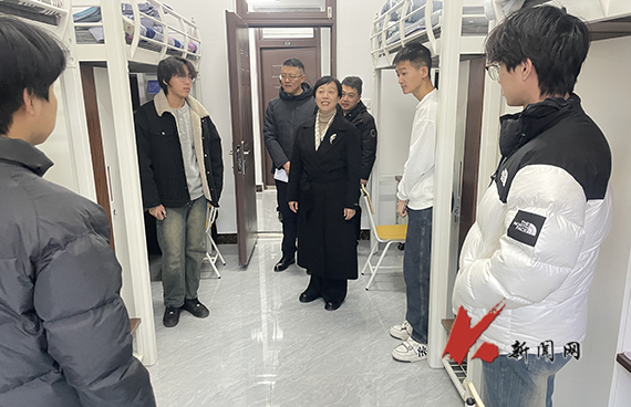 孙晓华在博学楼走访了教师休息室和多间教室,详细了解了新学期课堂教学情况,重点关注学生出勤情况、学习状态和课堂秩序等。她表示,新学期新起点,各学院要持续加强学风建设,开展监督检查,帮助学生尽快调整状态,合理安排作息时间,营造良好学习氛围。随后,孙晓华走访了25舍公寓,查看新建宿舍环境条件,询问了设施设备运行使用情况,并与学生亲切交谈,详细了解了宿舍搬迁情况、新宿舍入住体验及学习生活困难等。孙晓华强调,寝室是学生日常生活学习的主要场所,各相关部门要筑牢安全防线,加强安全管理,排除安全隐患;要加强学生日常行为管理,规范学生作息时间和用电行为等;要加强新建宿舍文化建设,尽快完善标识张贴和环境美化,营造温馨和谐的居住环境。