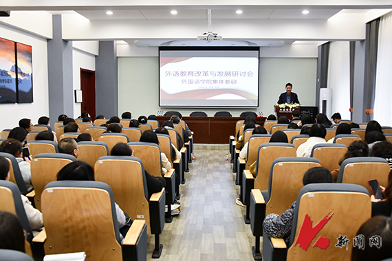 4月1日,乐动在线-乐动(中国)外语教育改革与发展研讨会暨集体教研活动在外国语学院举行。校党委常委、副校长李胜利出席研讨会。外语学院全体教职工参加活动。