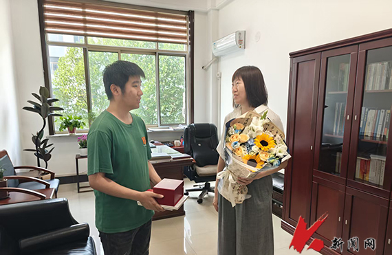 土木学院毕业生闫星龙汇报了大学四年的学习与生活情况。他满怀感激地说:“大学四年我学到了丰富的专业本领,毕业时也找到了满意的工作,特别感谢校领导、学院老师一直以来对我的关心与爱护。未来,我将继续脚踏实地,努力练就过硬本领,让青春在奋斗中闪光。”宋怡林对闫星龙的成长深感欣慰,鼓励他尽快完成角色转变,希望他在工作中吃苦耐劳、勤于实践,展现无限潜力,用实干铸就成功的基石。宋怡林还向学生赠送了人生励志类和职场突破类书籍,传递了对学生未来发展的美好期许与关怀。