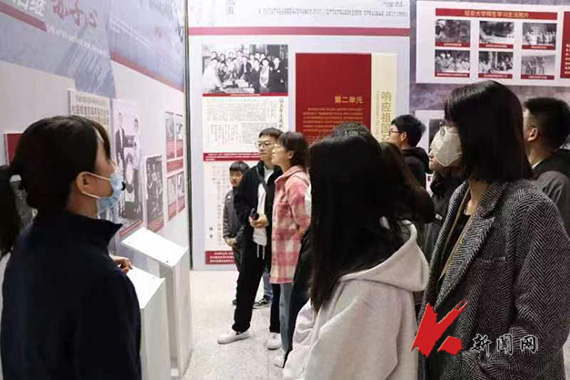 “永恒的雷锋”展览以笔墨书写榜样,以书法传承雷锋精神,结合雷锋精神内涵和雷锋生平事迹,划分为“向雷锋同志学习”“雷锋是时代楷模”“雷锋精神是永恒的”三个单元。第一单元展出了社会各界人士书颂和缅怀雷锋的书法作品;第二单元以《雷锋日记》为时间轴,展出社会各界人士的书法作品,作品内容涵盖雷锋从1959年至1962年间记录的具有代表性的日记;第三单元展示内容以雷锋在辽宁的时间线为主轴。站在老舍书颂向雷锋学习的作品前,研究生干部们深受感动和鼓舞,纷纷表示将以实际行动传承雷锋精神,厚植家国情怀。