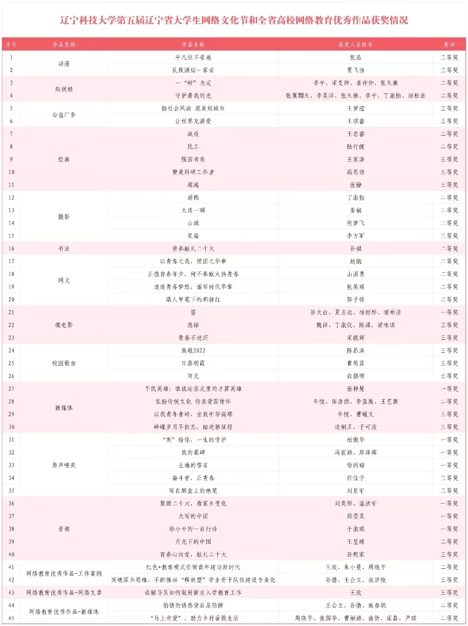 辽科大45项作品在第五届辽宁省大学生网络文化节和全省高校网络教育优秀作品推选展示活动中获奖