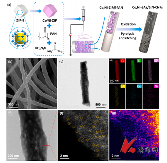 近日,乐动在线-乐动(中国)化学工程学院“清洁能源与燃料化学”导学团队依托辽宁省先进煤焦化技术重点实验室,在基于双单原子催化剂制备柔性自支撑电极方面取得新的研究进展,所制备的电极成功应用于固态和液态锌空气电池的构筑。相关研究成果以《Enhanced Zinc-air battery performance and local electrochemical evaluation of atomically dispersed Co and Ni in S,N-codoped carbon nanofibers via scanning electrochemical microscopy》为题,在Chemical Engineering Journal期刊上发表,第一作者为2020级博士生潘浩然和2023届硕士毕业生张晨(共第一),通讯作者为“清洁能源与燃料化学”导学团队的陈星星教授、窦金孝副教授以及香港中文大学(深圳)李怀光助理教授,辽科大为第一通讯单位。