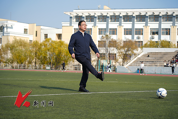 辽科大校长胡军为“校长杯”足球赛决赛开球