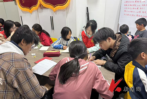 活动中,工作室教师与柏剑深入交流,探讨后续帮扶计划。学生党员为孩子们分发水果、学习用品,并耐心辅导孩子们完成日常作业。孩子们集体背诵《少年中国说》《大学》,展现了传统文化传承的力量。