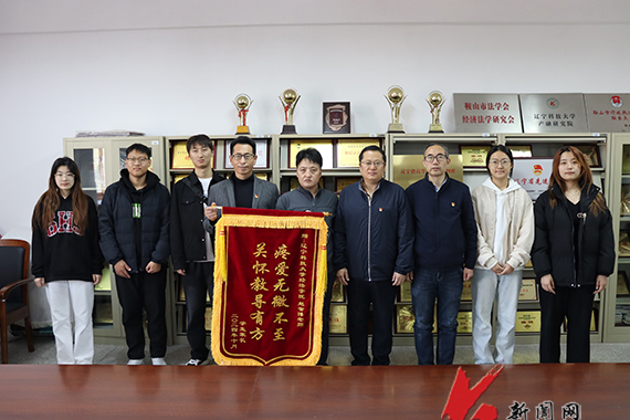 10月31日,辽科大经济与法律学院国贸2023.2班学生杨坤林的家长风尘仆仆地赶到学校,为经法学院党委书记兼2023级国贸、金融专业辅导员赵智博送来一面写有“疼爱无微不至,关怀教导有方”的锦旗。