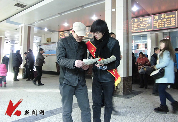 2013年12月21日 辽科大志愿者向旅客解读文明礼让宣传单的内容