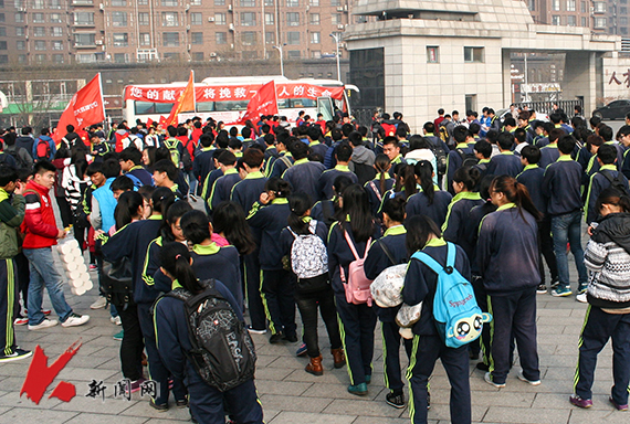 2018年1月12日 辽科大开展“跟着郭明义学雷锋——大学生寒假返乡暖心活动“现场