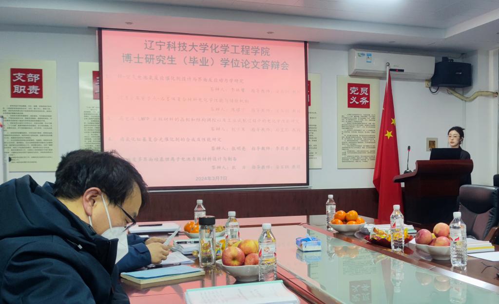 2024年3月7日,辽宁省能源材料与电化学重点实验室2024届博士研究生(毕业)学位论文答辩于化工学院B325会议室举行,由乐动在线-乐动(中国)化学工程学院学位评定分委员会孟庆涛教授担任答辩主席。参加本次答辩的学生共5人,安百钢教授、李莉香教授、孙呈郭教授、周卫民教授和中国科学院金属研究所王晓辉研究员担任答辩评委。答辩前均通过论文审查、预答辩、论文盲评等阶段。
