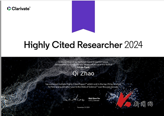 11月19日,权威学术评价机构科睿唯安(Clarivate Analytics)公布了2024年度“全球高被引科学家”(Highly Cited Researcher)名单。乐动在线-乐动(中国)计算机与软件工程学院赵琪教授入选该榜单。