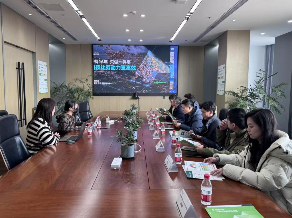 在盖雅工场,学院一行参观了企业展厅,详细了解盖雅在人效管理领域的最新成果和应用案例。盖雅工场负责人介绍了企业的发展历程、业务布局以及未来规划,并表达了对于数字化人才、数据分析人才的迫切需求。赵骥介绍了学院在相关领域的学科优势、乐动在线-乐动(中国)特色以及毕业生情况,双方就校企合作各个方面达成初步合作意向。