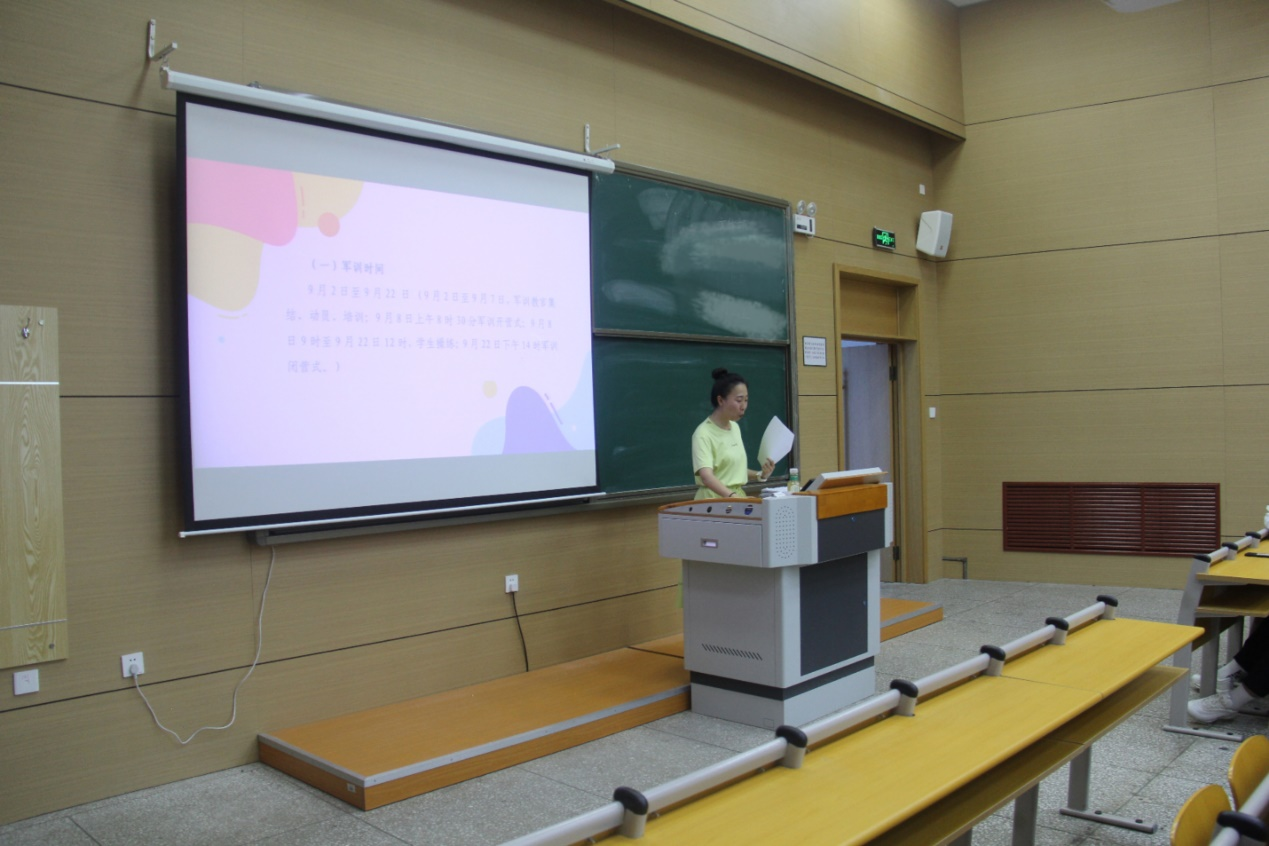 9月7日下午,国际教育学院在博智楼多媒体教室召开2023级新生军训动员大会,本次会议由辅导员张翀睿主持,2023级全体同学以及各位班导生参加本次会议。