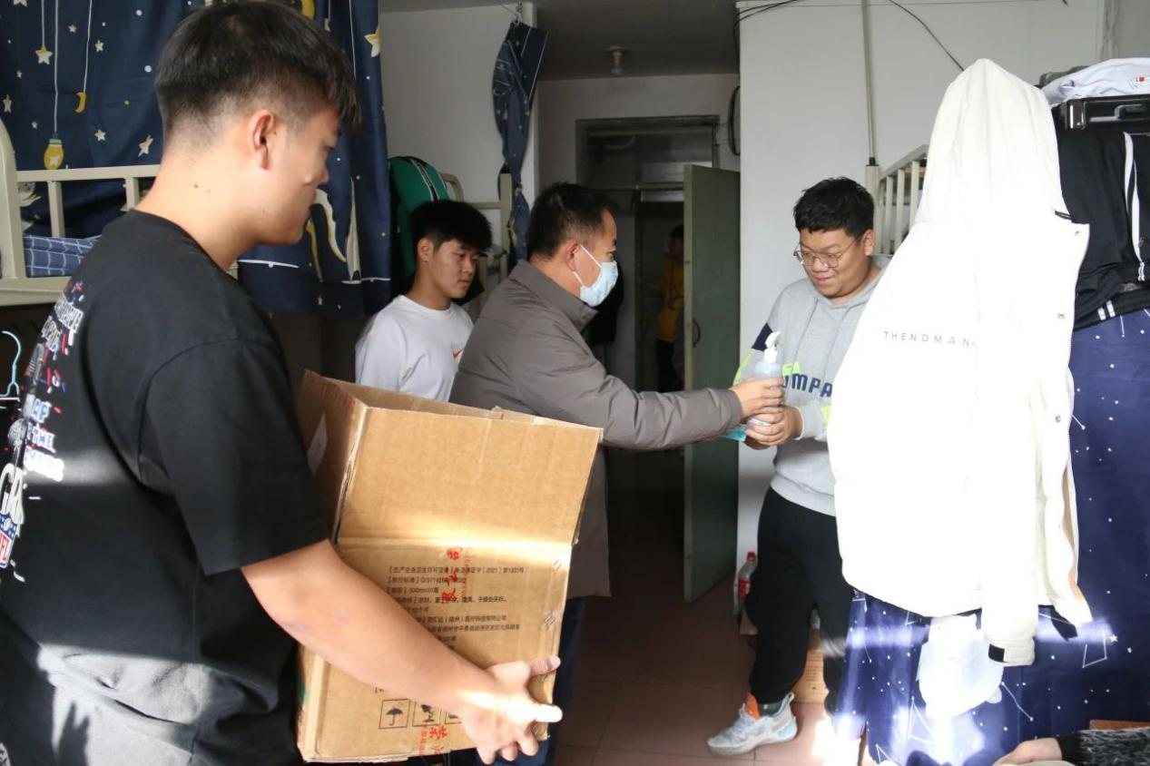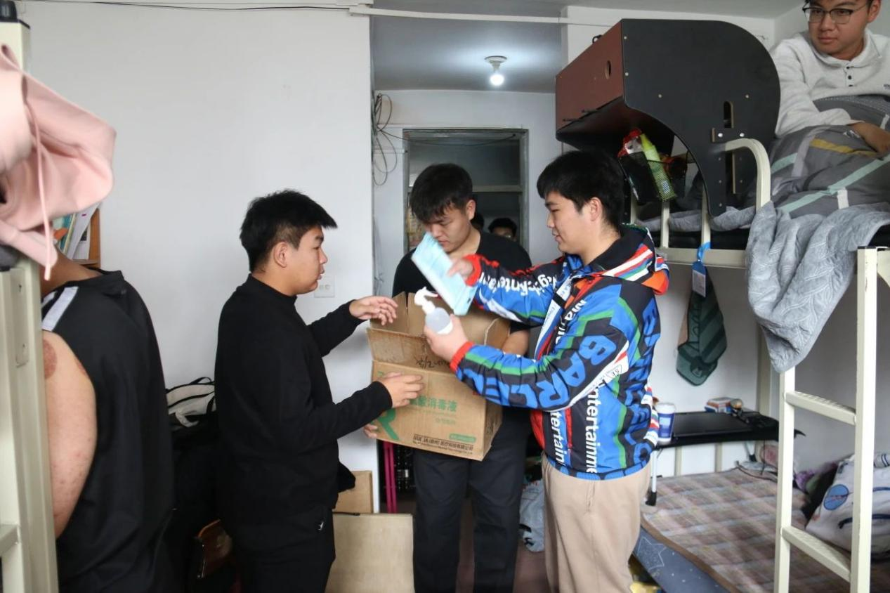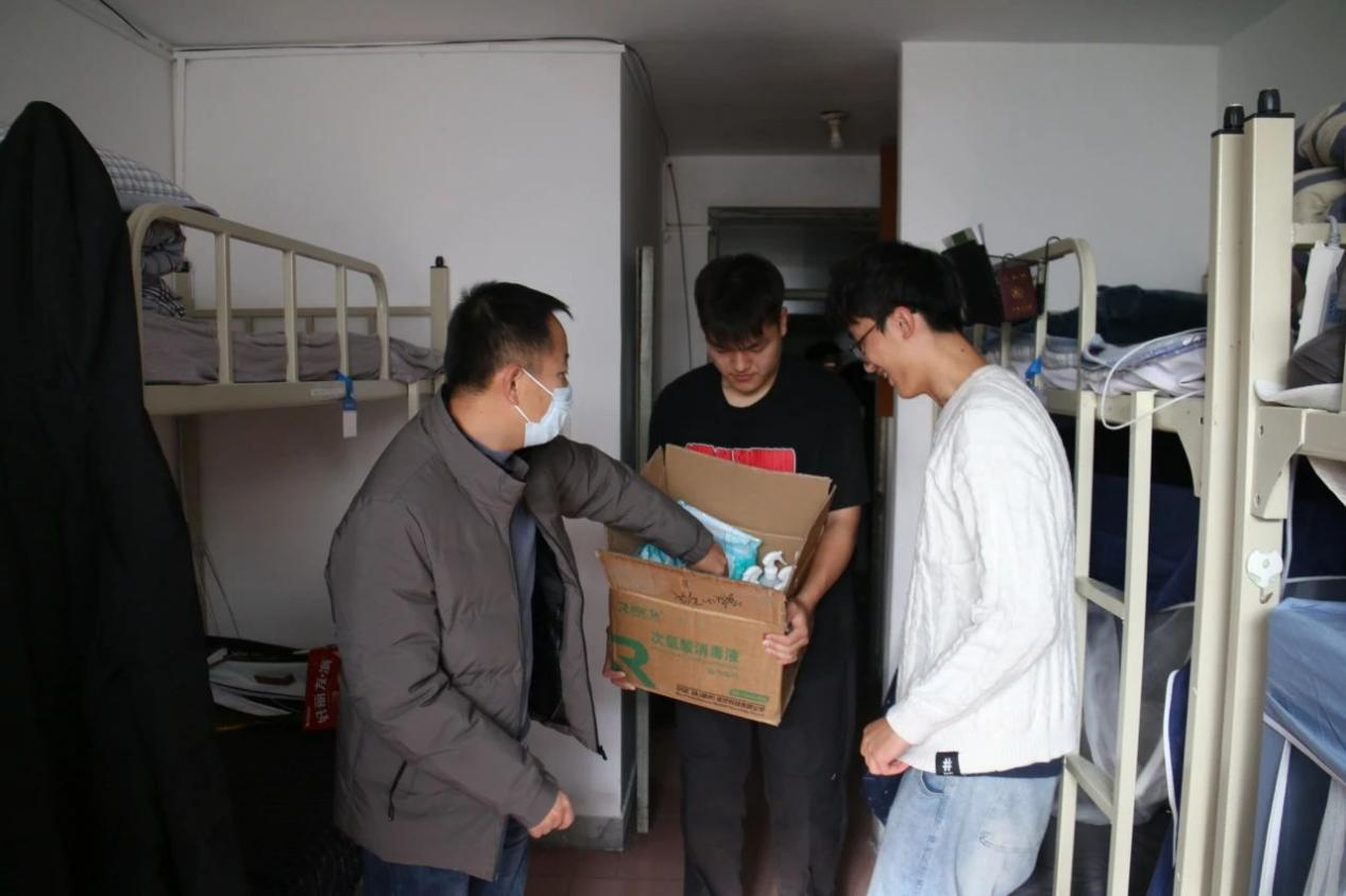 辽科大国际教育学院走访学生寝室,发放卫生消毒用品