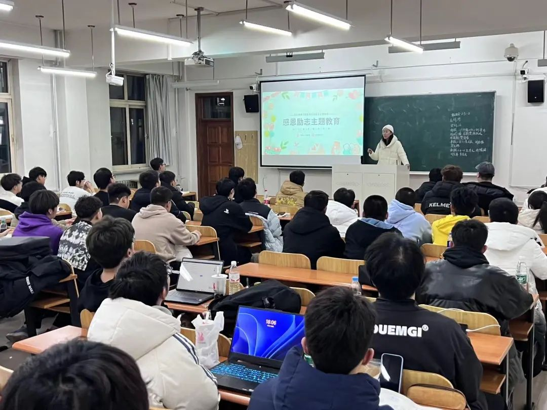 随后联冶金22-1班班长戴兴旺通过趣味问答、经历分享等方式对同学进行了感恩教育,并鼓励同学们要积极树立目标、励志奋进。