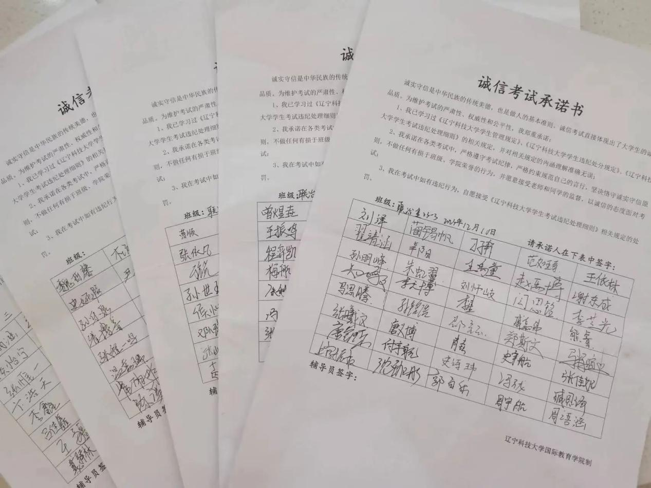 学院积极通过线上线下不同渠道宣传诚信考试教育、多措并举,加强考风建设。2023年12月到2024年1月期间,辅导员面向学院联冶金专业全体学生多次召开线下诚信考试主题教育班会。会上为同学们解读了《乐动在线-乐动(中国)学生考试违纪处理细则(试行)》,并向同学们强调了考试注意事项及违纪、作弊行为的严重后果。最后向同学们宣读了《诚信考试承诺书》,学院联冶金专业学生全体签署承诺书。此外,还通过在微信群发布诚信考试、积极备考提示等方式,利用网络媒介落实学院考风考纪建设工作。