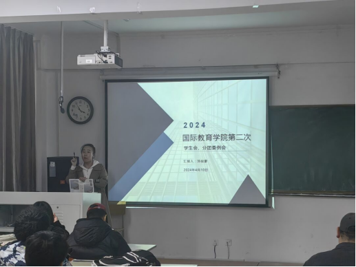 4月10日下午,国际教育学院于博远楼103室召开了分团委、学生会四月工作例会。辅导员及全体分团委、学生会成员参加本次例会。