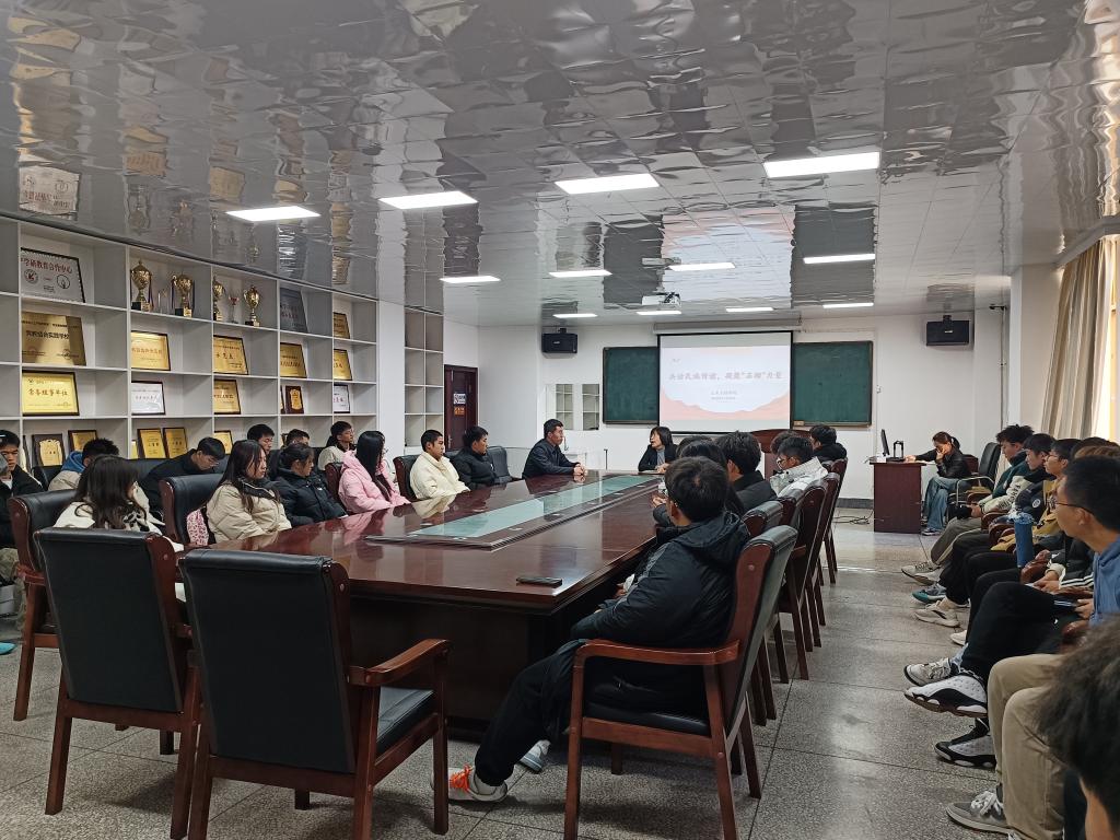11月24日,土木工程学院于博观楼A408会议室召开“共话民族情谊 凝聚‘石榴’力量”少数民族学生代表座谈会。学院党委书记周晓平、学院团委书记李振南与23级30名少数民族学生代表共同参加座谈会。会议由李振南主持。
