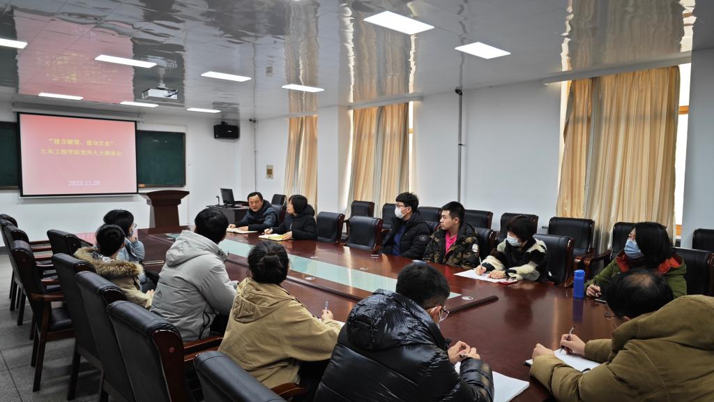 2023年11月28日,土木工程学院在博观楼A408召开党外人士座谈会,学院九三学社教师代表以及无党派人士十人参加了会议。会议由统战委员张铁志主持。