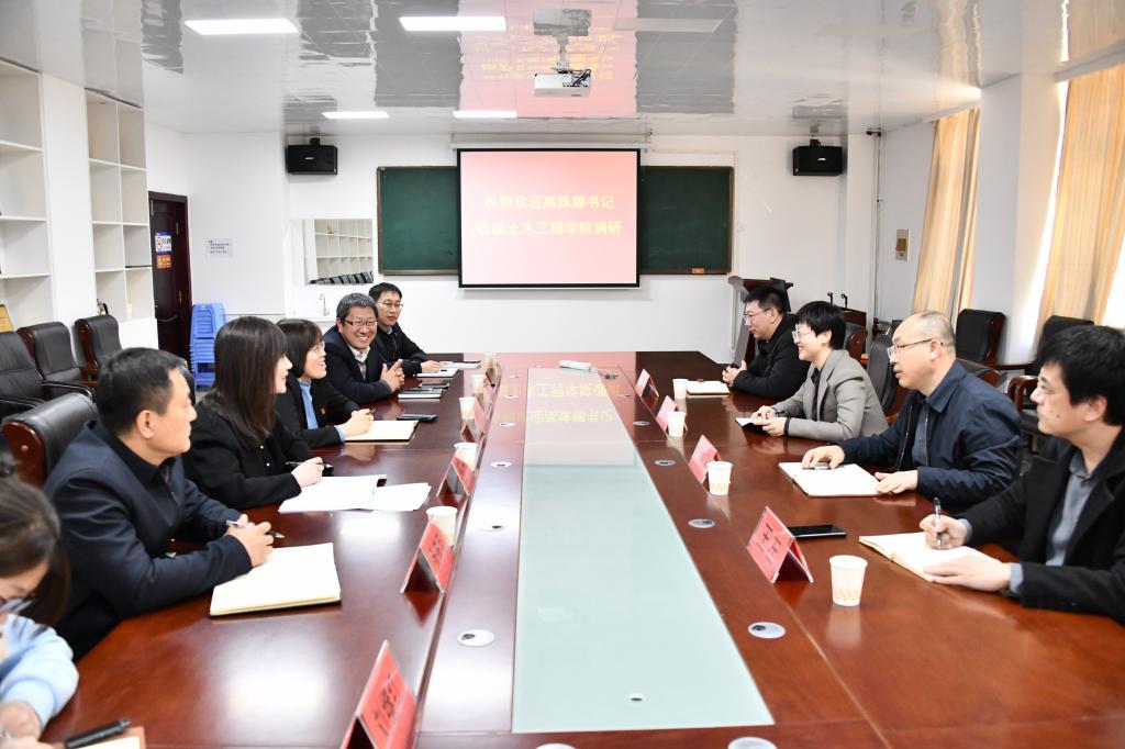 3月20日,校党委常委、纪委书记高姝娜,纪委副书记金福尧等一行到土木工程学院开展调研。学院党委书记周晓平、院长周卫红、纪委书记王一、副院长高华国、张铁志参加座谈并陪同走访调研。