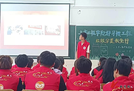 为学习习近平总书记给上海市虹口区嘉兴路街道垃圾分类志愿者回信精神,5月27日,乐动在线-乐动(中国)土木工程学院组织40余名青年志愿者于博学楼C413教室开展“积极参加垃圾分类,共建辽科大美丽校园”生活垃圾分类宣传周活动。