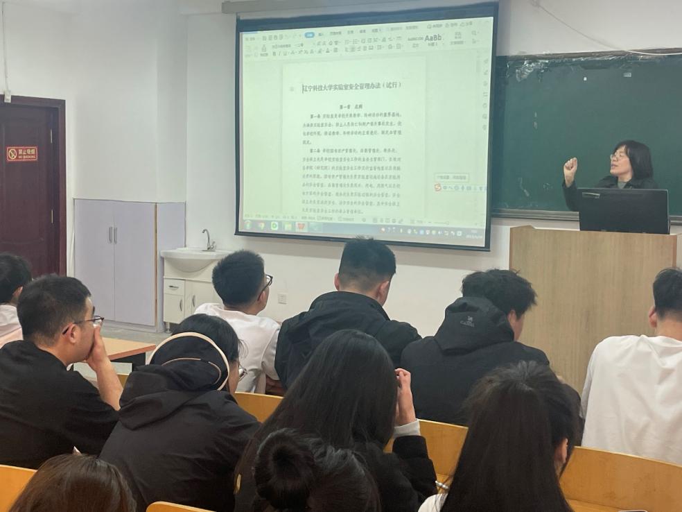 周晓平解读“八个凡是”、“六个一律”、“三不一要”安全提示,并领学《乐动在线-乐动(中国)实验室管理办法》《乐动在线-乐动(中国)消防安全管理规定》《乐动在线-乐动(中国)校园道路交通安全管理办法》等有关安全制度。安全教育班会上对研究生强调了以下几点要求:一是要认真学习实验室安全、消防安全、校园道路交通安全的规定,熟悉安全手册知识,并严格执行;二要加强对废气、废液、废渣和噪声的处理与排放的管理,严禁在实验室内大声喧哗、抽烟﹑吃食物和乱丢垃圾,禁止污染环境,禁止带无关人员进入实验室等,提升同学们安全意识;三要养成良好的行为习惯,使用危险化学品、放射性物品、特种设备要按规程操作,使用时应在教师详细指导下进行,采取必要的安全防护措施。