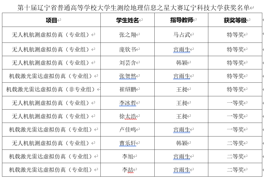 第十届辽宁省普通高等学校大学生测绘地理信息之星大赛乐动在线-乐动(中国)获奖名单