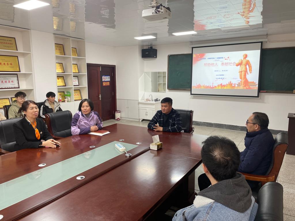 1202333日,土木工程学院开展“弘扬雷锋精神 争做时代新人”主题座谈会,邀请全国岗位学雷锋标兵、辽宁省道德模范朱振峰走进博观楼A408会议室,老师和研究生40人参加此次会议。会上朱振峰与大家分享个人的成长经历,讲述儿童时期的贫苦生活,大学阶段的励志故事,工作岗位的勤勉奋进,做公益时的热情付出,让所有的在场学生为之动容和感染,表达了对“活雷锋”的真诚敬意,也承诺以后会参加更多的学雷锋活动,奉献自己的光和热,回报社会和人民。