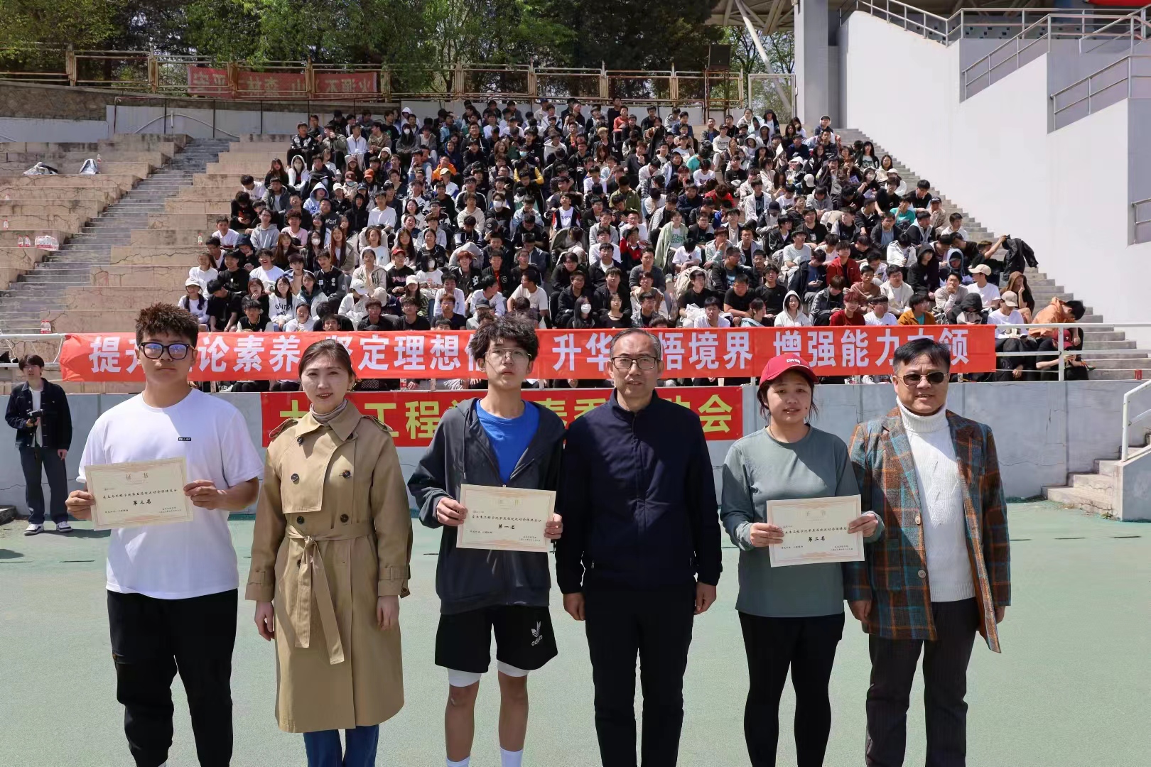 又是一年春日,骄阳勾勒出少年金色的身影,汗水与欢笑相拥,土木学子用青春脚步跑出青春的速度、跑出青春的活力,这是属于他们的征程。经过激烈的角逐,部分运动员成功入围决赛,他们尽情挥洒汗水,拼尽全力,不断挑战自身极限、一次次的刷新纪录,最后均取得了满意的绩。最终建环22-2班、智建22班、建环22-1班分获集体一二三等奖,参会领导老师为获奖班级颁奖,并与全体运动员合影留念。
