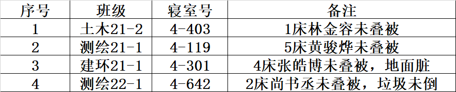 土木工程学院大学生自我管理委员会于20231016日至1020日面向学院开展检查工作,检查结果通报如下。