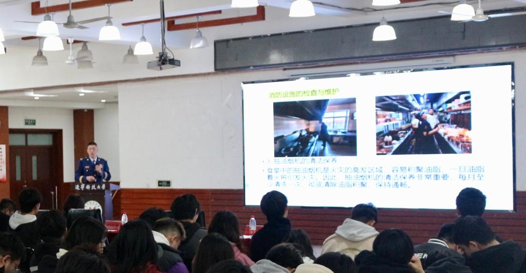 3月5日,刘本成应邀到校为学院师生开展“关注消防安全,共筑美好家园”主题讲座,并围绕认真做好消防工作的重要性、寝室安全、食堂安全等三个板块进行专业、深入的讲解。他以身边发生的鲜活案例作为切入点,告诫与会师生务必高度重视消防安全,“提高消防安全意识就是对自己的生命健康负责,不要因一时的疏忽造成一世的悔恨,惨痛的教训值得深思!”并通过动画展示、实物讲解和现场模拟等形式,介绍了室内火险的逃生技巧、寝室用电及电器设备充电的注意事项、消防设施的使用方法等实用内容。会后,师生们在刘本成带领下进行逃生演练,以此加强对讲座内容的理解和认知。