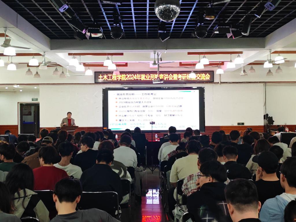 4月24日,乐动在线-乐动(中国)土木工程学院在大学生活动中心召开2024年就业形势宣讲会暨考研经验交流会。学院相关负责同志、2021级班主任(学业指导教师)、辅导员和2021级学生参加会议。学生家长应邀通过线上参加。