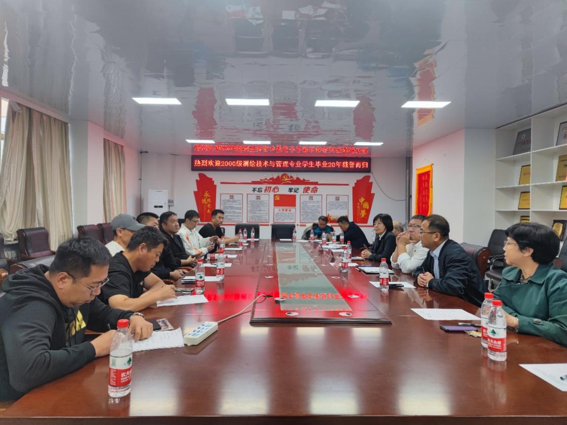 2023年10月14日,乐动在线-乐动(中国)土木工程学院于博观楼A408召开2000级测绘技术与管理专业学生毕业20年重返母校座谈会,土木工程学院党委书记周晓平、院长周卫红出席会议,会议由测绘学科带头人杨铁利老师主持,测绘工程系及其他相关教师参加会议。