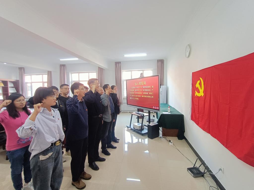 首先,全体党员观看了中央纪委国家监委制作的电视专题片《永远吹冲锋号》,通过观看典型案例,为全体党员敲响了防腐警钟,拉响了倡廉警报,增强了党员的宗旨观念和廉洁自律意识。随后,李路云、吕玲同志作为党员代表逐一朗读入党志愿书、入团志愿书,回忆入党初心,查摆自身差距,就发挥先锋模范作用进行表态。最后,全体党员面对鲜艳的党旗举起右拳,庄严宣誓重温入党誓词,回顾入党情景。