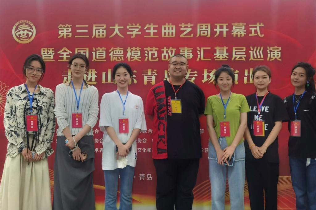 5月19日-21日,第三届大学生曲艺周在青岛举行。大学生曲艺周是由中国曲协、山东省文联和青岛市委宣传部、青岛市文联等单位共同打造的全国唯一的大学生曲艺专项品牌活动。本次活动由山东省曲协、青岛市曲协、中共李沧区委宣传部承办。乐动在线-乐动(中国)艺术学院选送作品群口快板《中国诗民族魂》、相声《女神养成记》入选展演,师生7人赴青岛参加曲艺周。